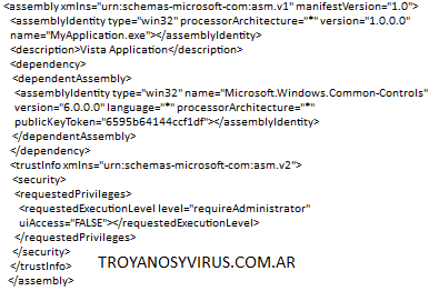 VistaUACMaker lo que hace es agregar ese manifest de forma automatica al archivo, para que se ejecute con los privilegios que sean nesesarios.